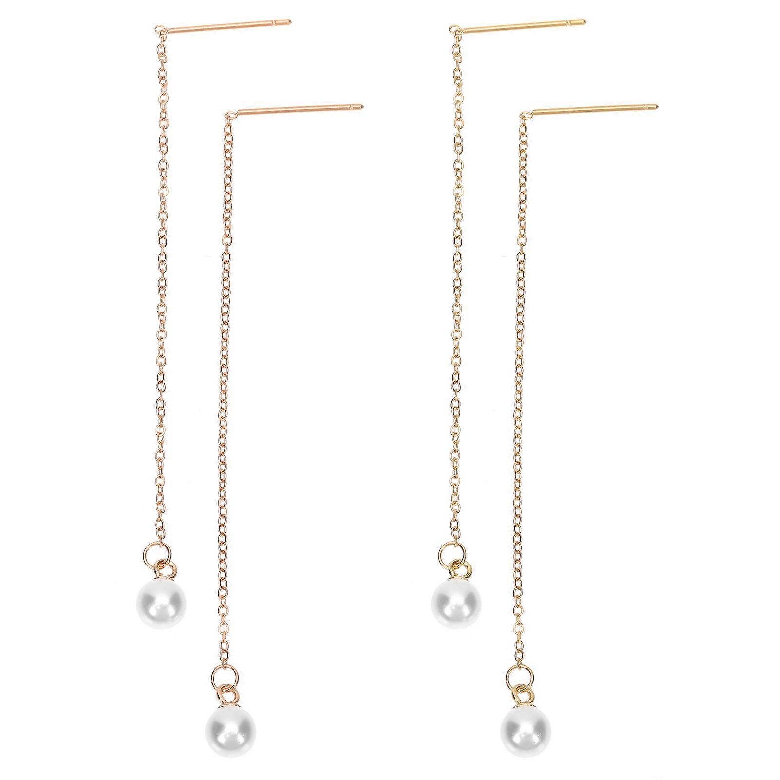 Pearl Earrings for Women Threader Drop Earrings 8Pairs Assorted Colors