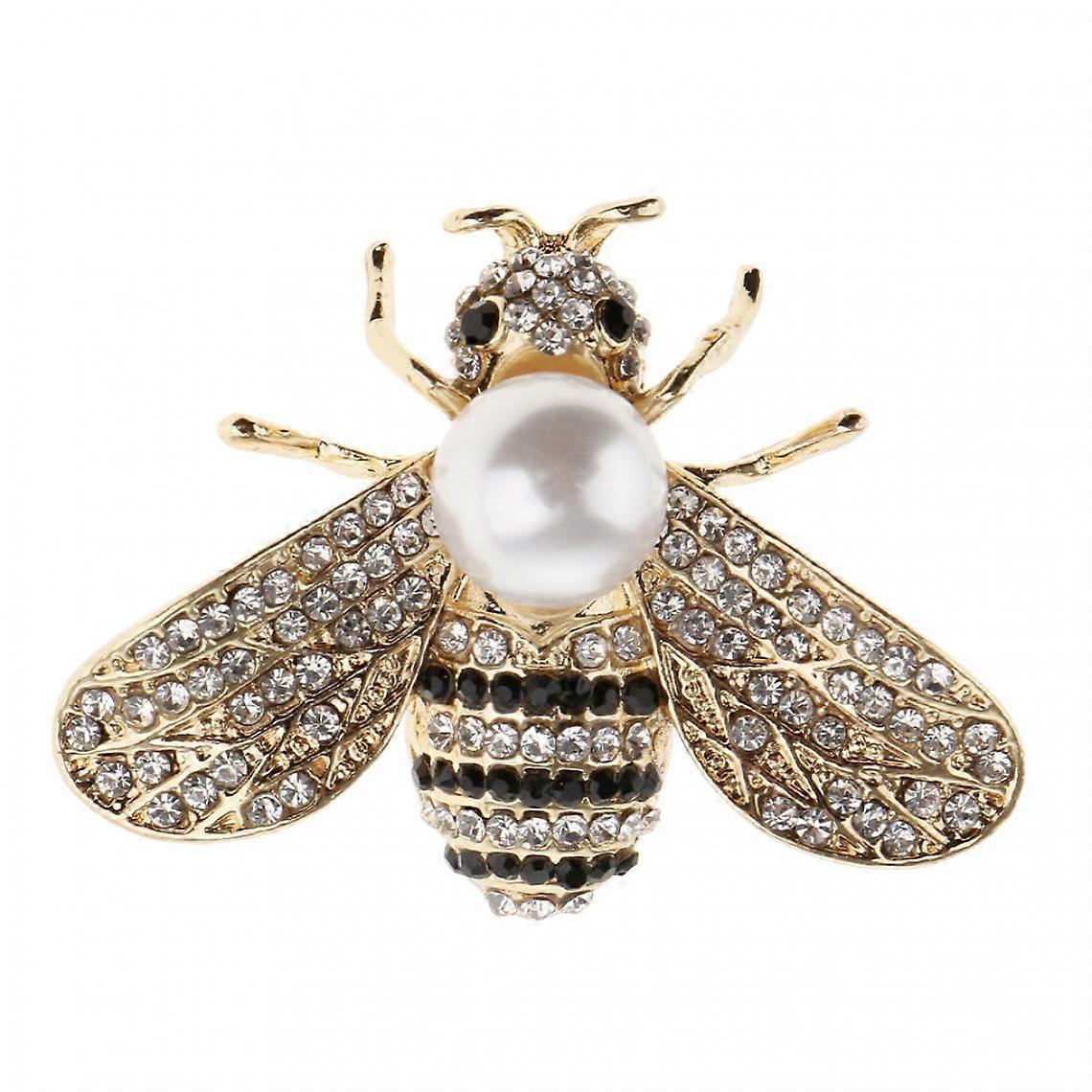 pearl diamond rhinestone bee brooch badge lapel buttonhole black