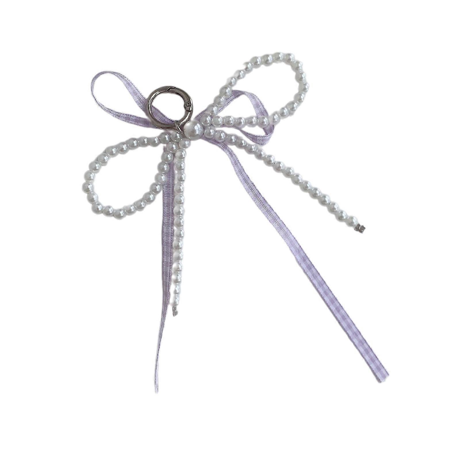Sweet Ribbon Bowknot Keychain with Pearl Handcrafteds Bag Pendant Phone Charm Backpack Decoration Purple