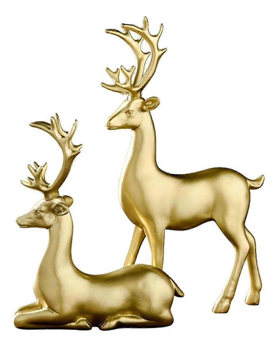 Marble Resin Crafts Living Room TV Cabinet Study Animal Decoration Golden Elk Decoration (1Pcs)
