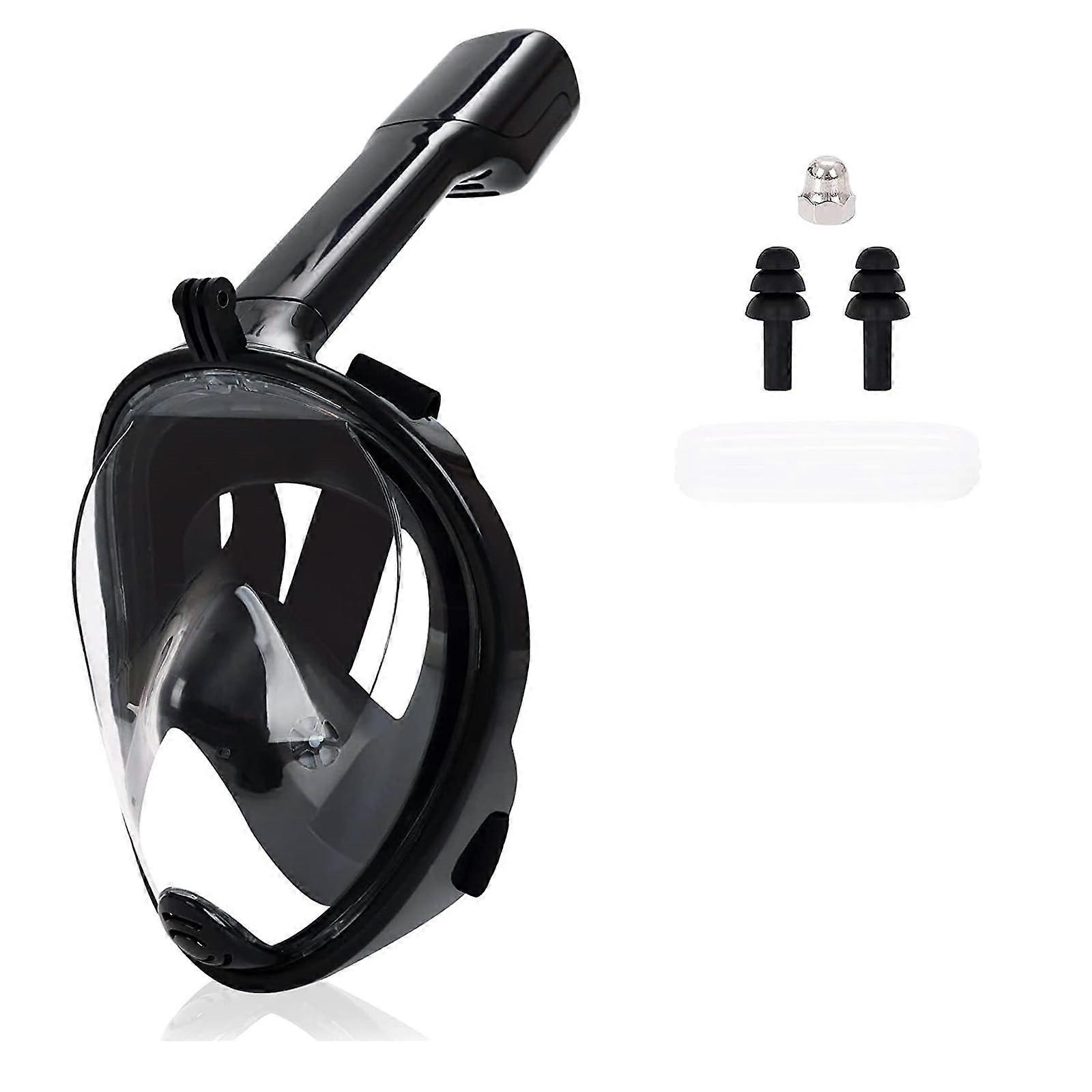 Snorkel Mask Full Face,180 Panoramic Diving Mask Free Breath Snorkeling Mask-Black