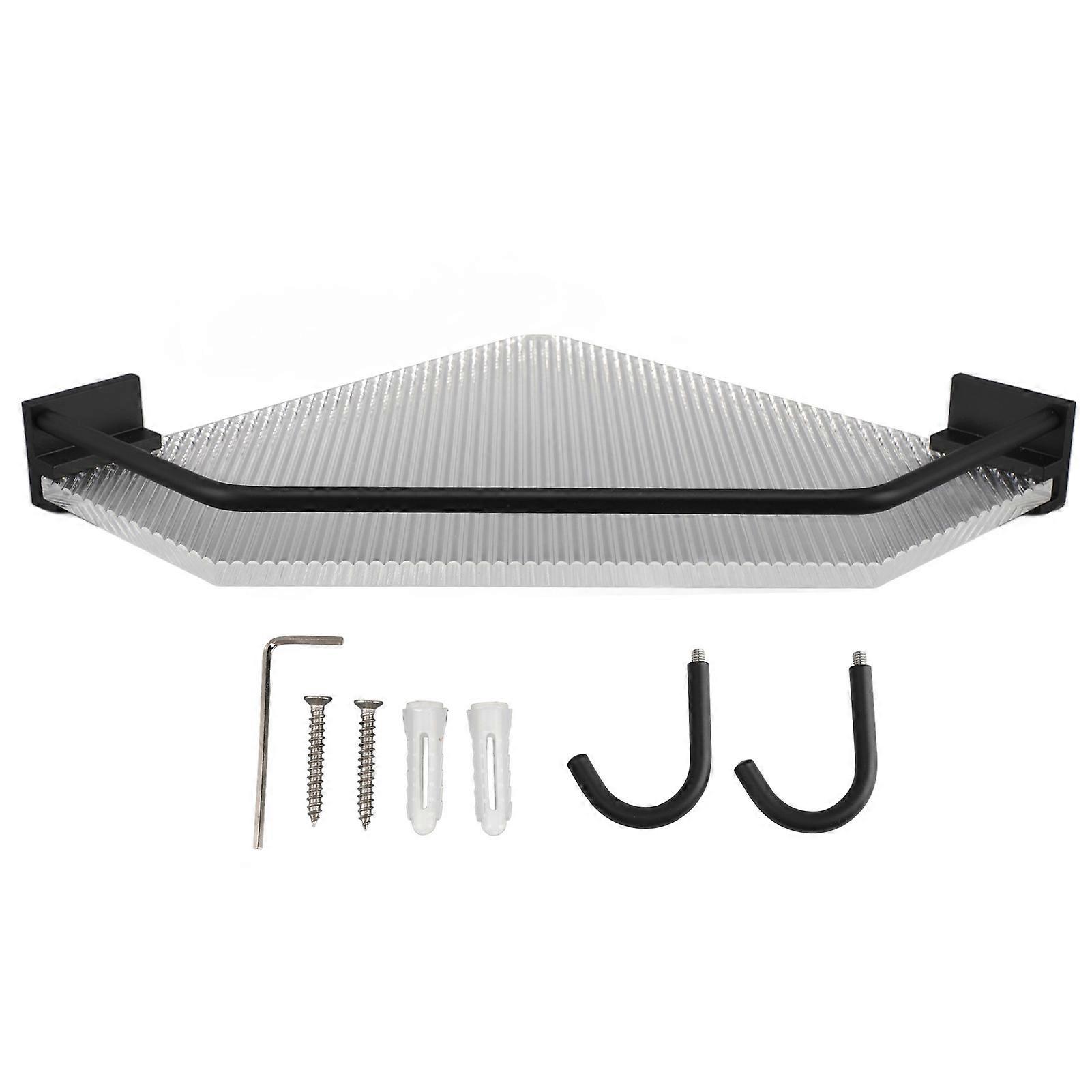 Black Triangle Acrylic Corner Shelves with Hooks for Bathroom, Kitchen, or Toilet - No Drilling Needed, Sturdy Design