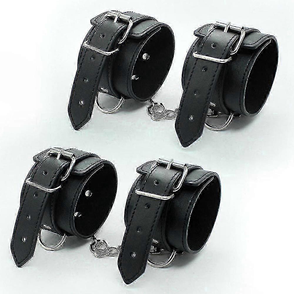 Black Leather Ankle Straps for Workout Fitness Cuffs Glutes & Legs, Home Yoga for Men & Women
