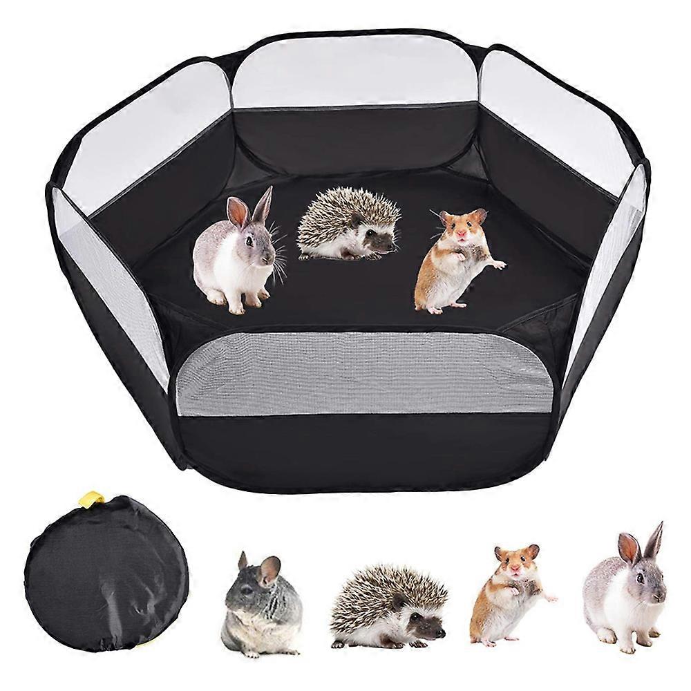 Black Small Animals Cage Tent, Breathable Pet Playpen Pop Open Outdoor/ Indoor Exercise Fence, Portable Yard Fence For Guinea Pig, Rabbits, Hamster