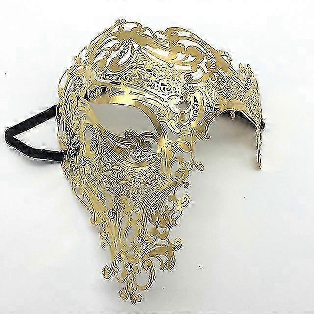 Black Gold Skull Metal Mask Halloween Rhinestone Half Face Venetian Masquerade Men White Women Skull Filigree Party Mask