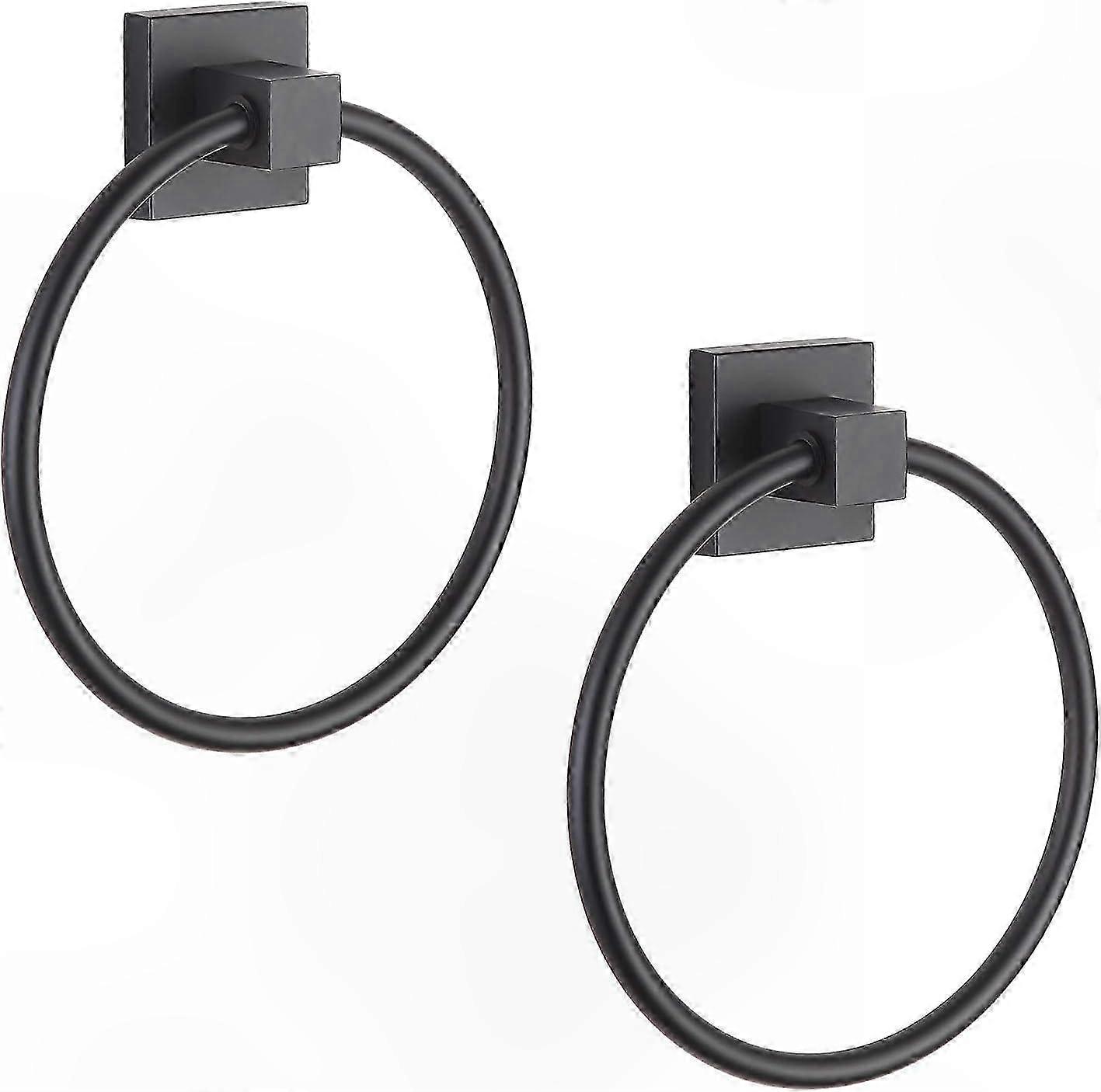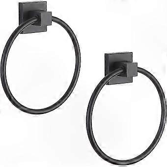 Black Metal Towel Ring, Wall Mounted Holder for Bathroom and Kitchen, 2 Pack Round Rings