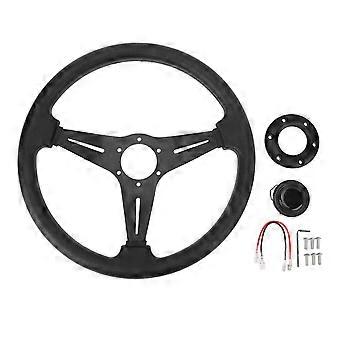 Black steering wheel for 6 hole adapter, 14in PU leather racing