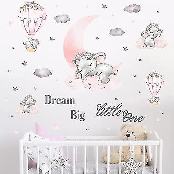 Μεγάλες ροζ χαλκομανίες τοίχων ελεφάντων μωρών, χαριτωμένες πέντε ελέφαντες γκρίζες φεγγαριού αστεριών φεγγαριού σύννεφα ροζ χαλκομανίες τοίχων υψηλής ποιότητας