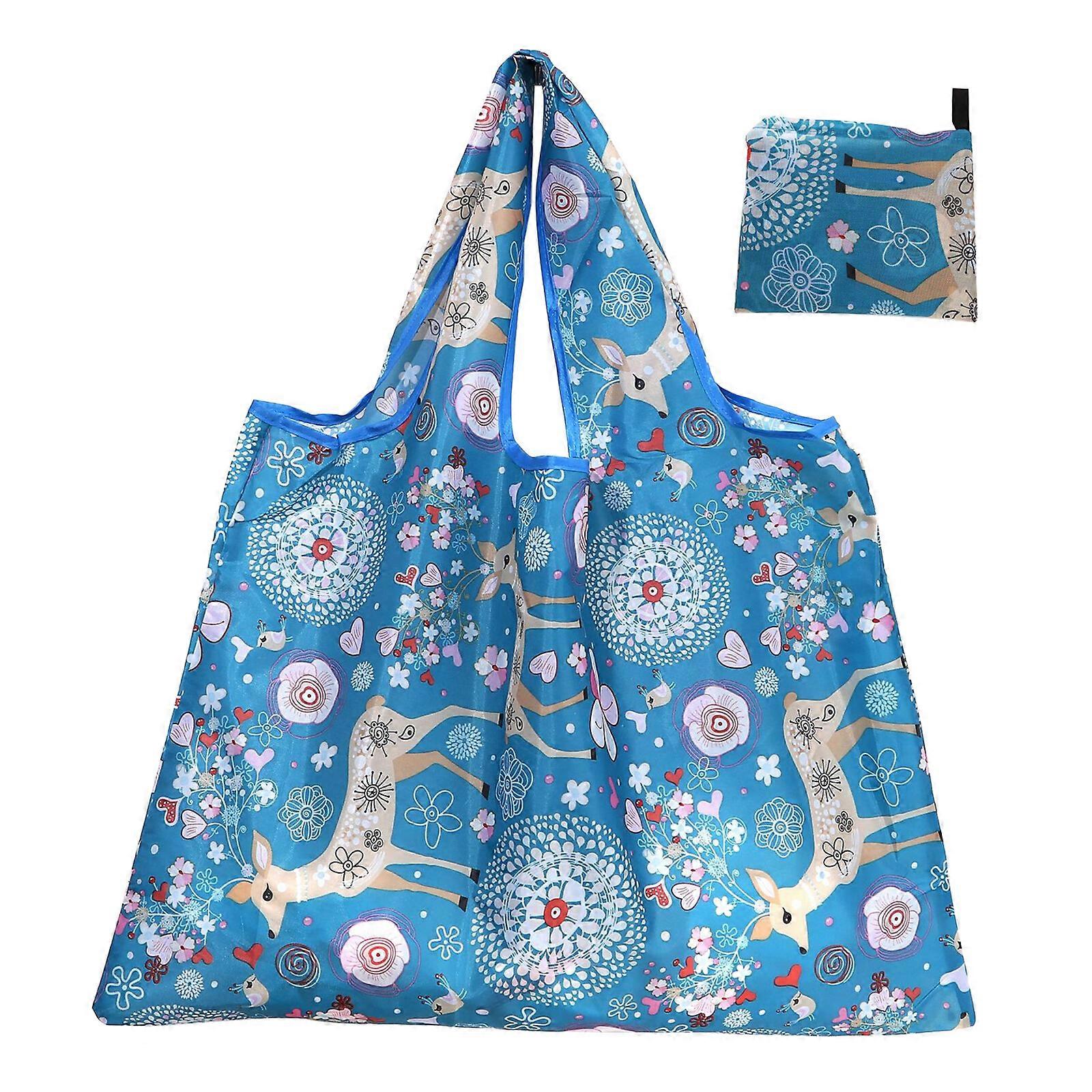 Large Shopping Bag Portable Reusable Oxford Cloth Eco Friendly Floral Print Washable Handbag