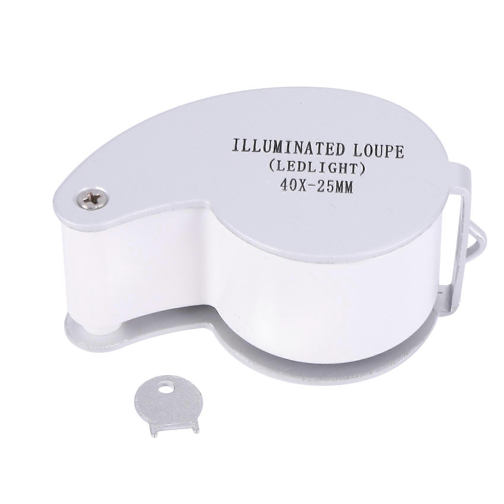 40 X 25mm Glass Lens Jeweler Loupe Magnifier With LED-Silver