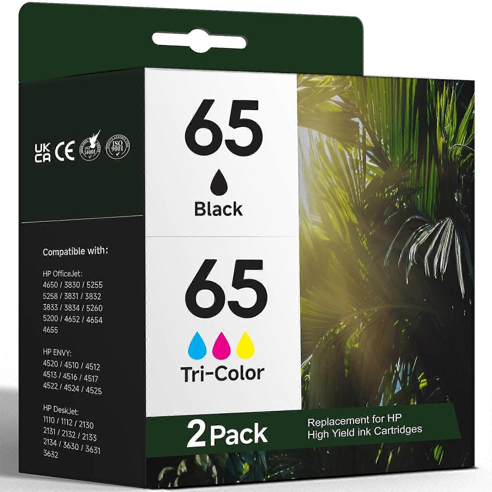Kalaze Printer Ink Cartridges for HP, Multicolor, HP 65XL