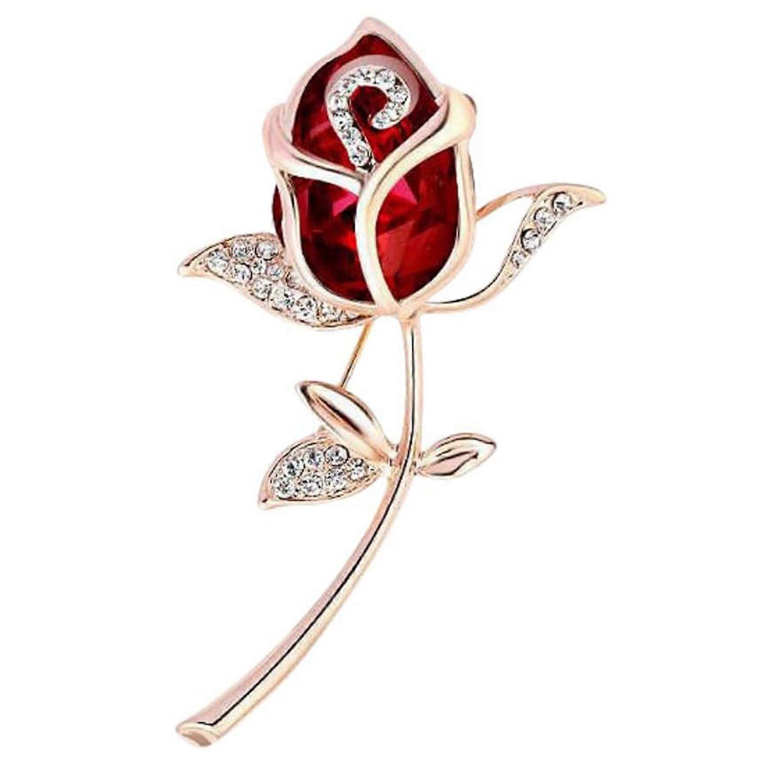 Metal brooch in the shape of a red rhinestone rose brooch with vintage elegance.