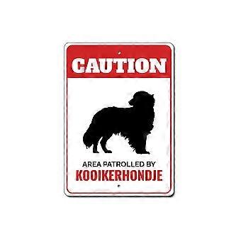 Patrolled By Kooikerhondje Caution Metal Sign Dog Kennel Pet Breed Canine Paw Size: 8 x 12 Inch