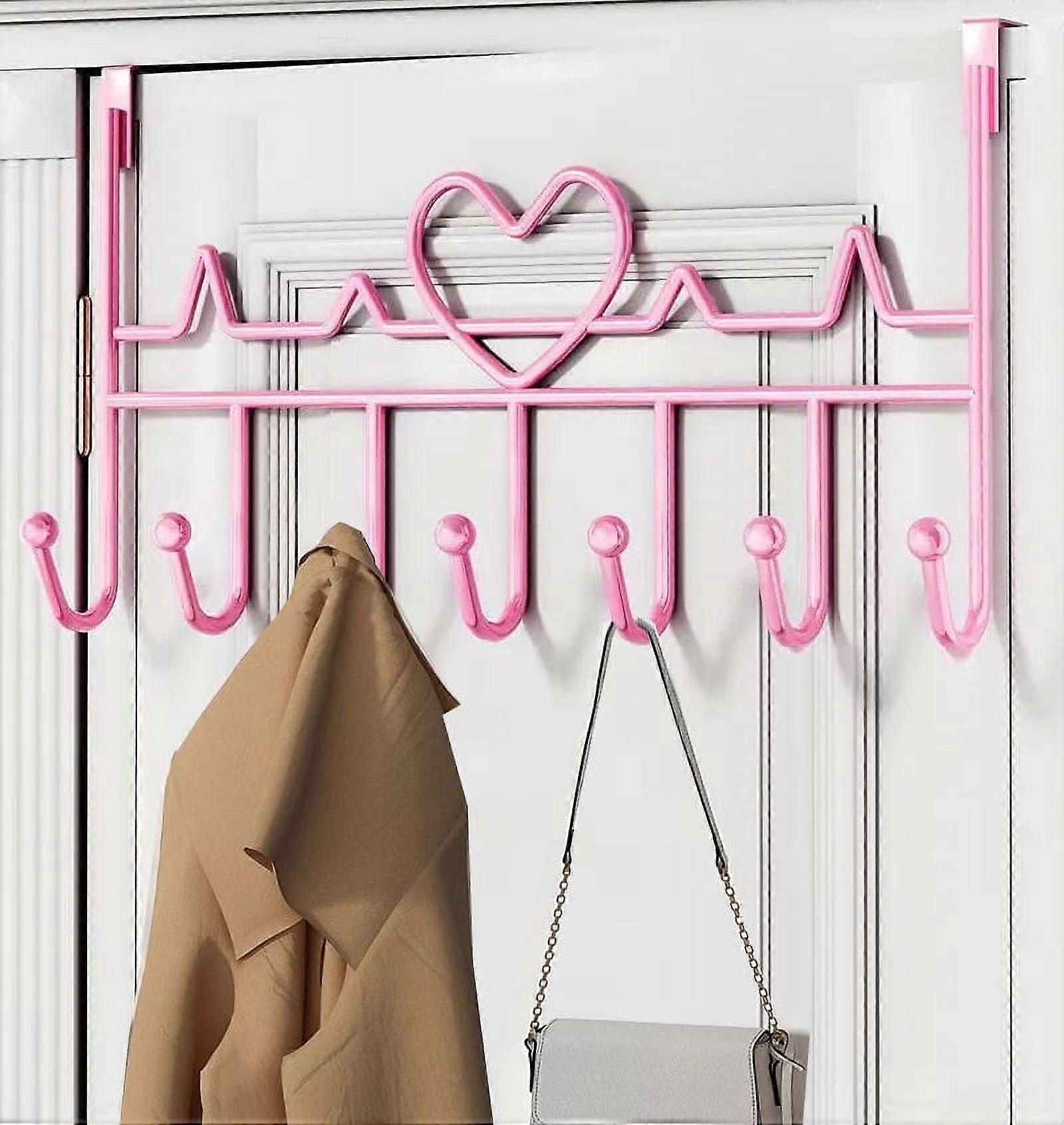 Bexikou Pink Metal Over Door Hook Rack with 7 Hooks, Compatible with Bathroom, Bedroom, Kitchen for Towels, Hats, Coats, Bags, Scarfs