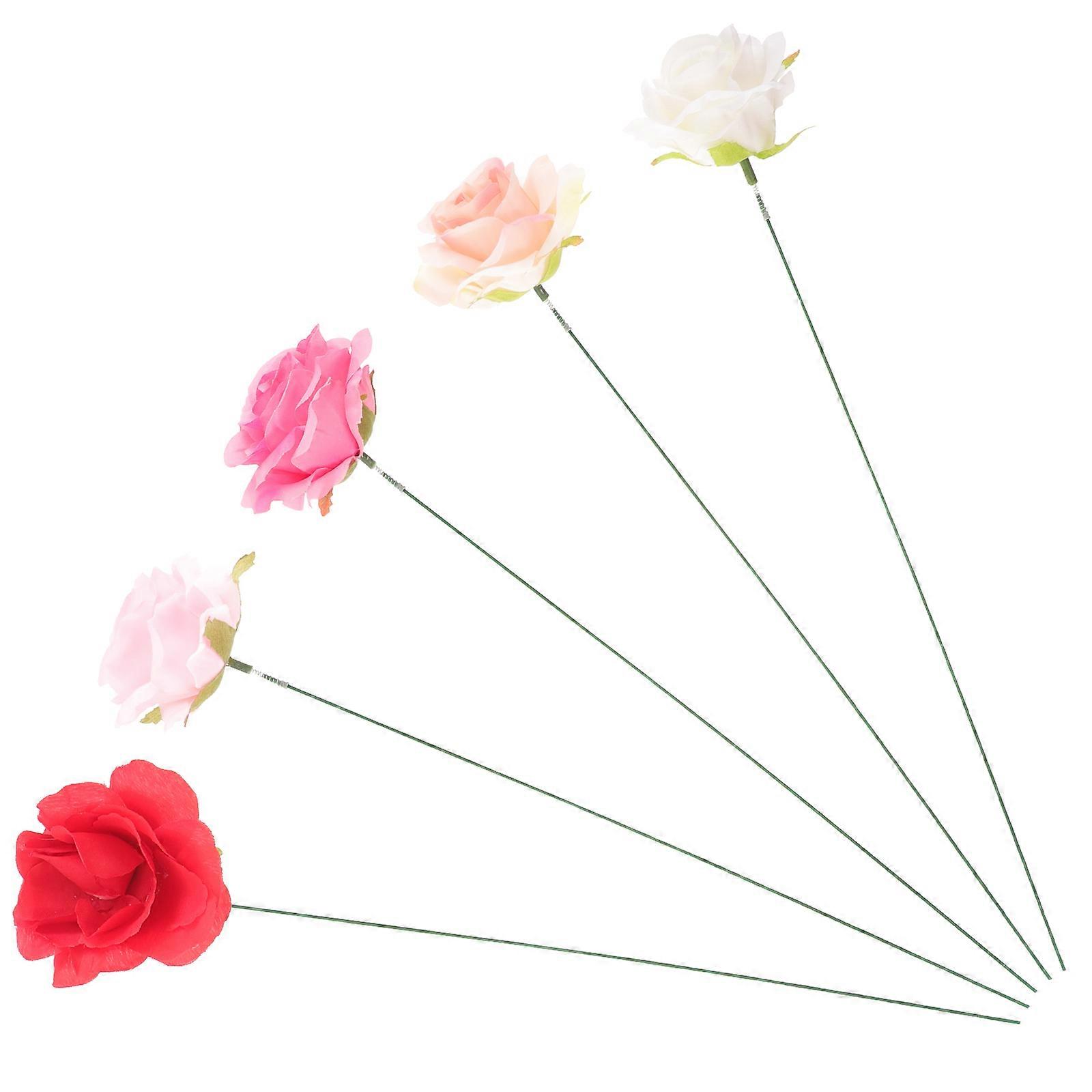 Metal Garden Flower Stakes with Silk Roses for Decorative Yard Art and Ground Inserted Ornaments 5 Pieces