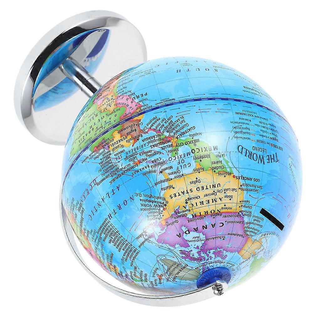 This globe-shaped piggy bank is designed to make saving money fun and educational. The detailed world map on the globe helps children learn about different parts of the world as they save their coins. Its compact and portable design makes it easy to move around, and it fits on a desk or shelf, adding a decorative touch to any space. Features - Color: Multi -Material:Stainless steel and plastic - Size: 20.00X16.00X14.20cm/7.86X6.29X5.58in -Charming design: the globe shape is both cute and engaging, making saving money enjoyable for children -Educational value: encourages kids to learn about geography and the world around them -Userfriendly: the money slot is designed for easy access and use by children -Safe for kids: specifically designed to and suitable for children's use -Detailed craftsmanship: design and attention to detail make it a beautiful and valuable item Package list: 1 x globe money bank