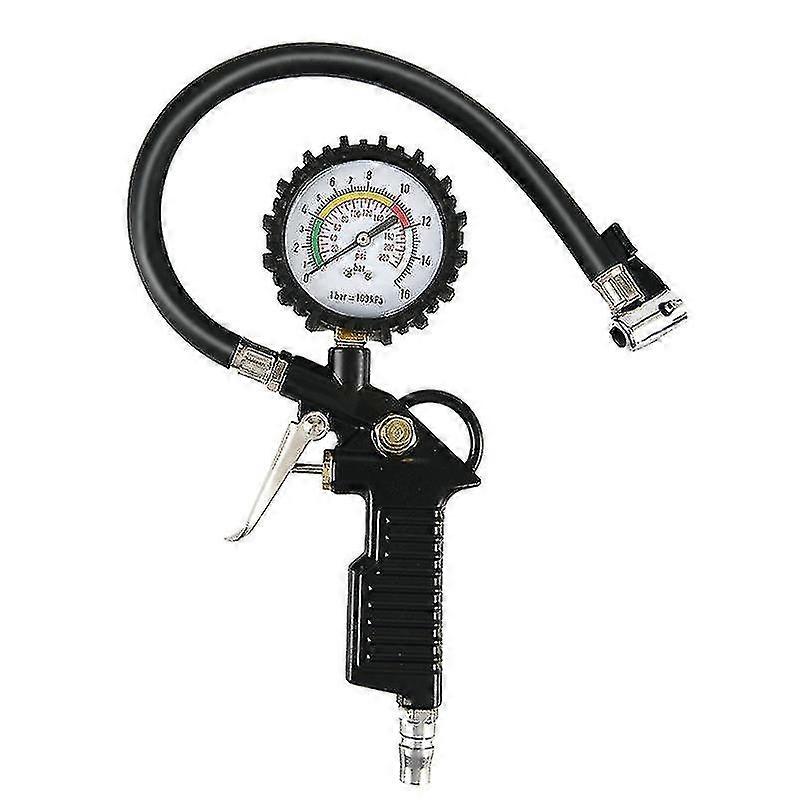 [Accurate measurement]: Thanks to the calibrated pressure gauge, the tire inflator always measures the exact value even if the measurement is repeated The measurement range is 0-15 bar [Easy to use]: A valve torque cap on the tire under test can be mounted on the valve Just press the clip and everything is tight Excellent for one-handed work [Product Accessories]: Our products include metal tire pressure gauge [Scope of application]: Suitable for cars, motorcycles, bicycles High quality parts for longer life [Package includes]: 1 x Tire Pressure Gauge