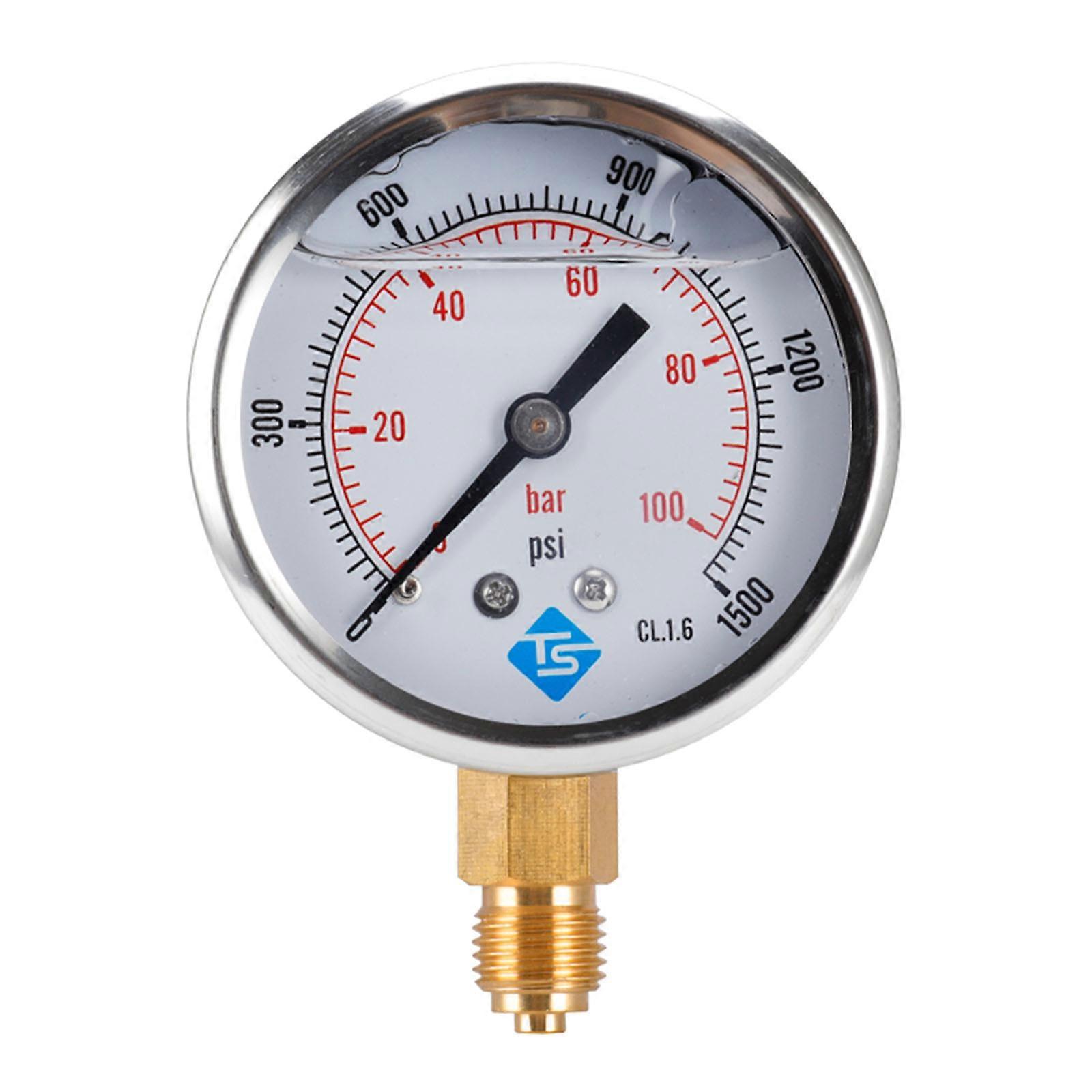 Stainless Steel Vacuum Pressure Gauge Glycerine Filled 1/4'' BSP Bottom Dual Scales 0-100 Bar 0-1500 PSI Vacuum Gauge