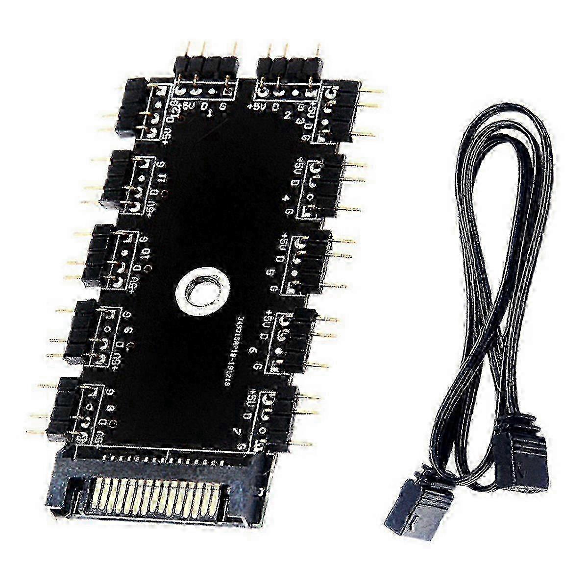 Motherboard 1 to 11 5V 3 Pin PWM Cooler Fan HUB Splitter Extension Adapter PC ARGB Cooling Fan HUB SATA Power SupplyBlack SZRH A-GB