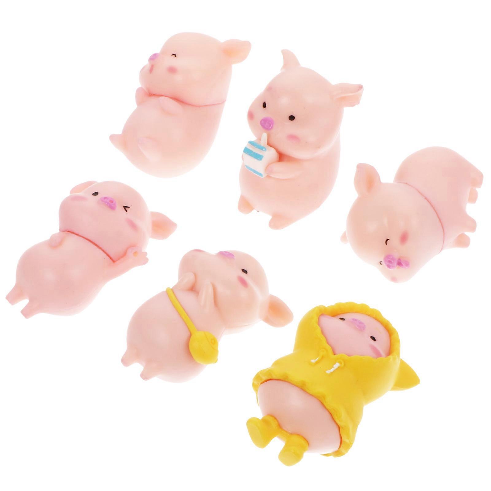Small Animal Ornaments 6Pcs Craftsmanship Pink Pig Figurines For Children's Toy And Home Decoration