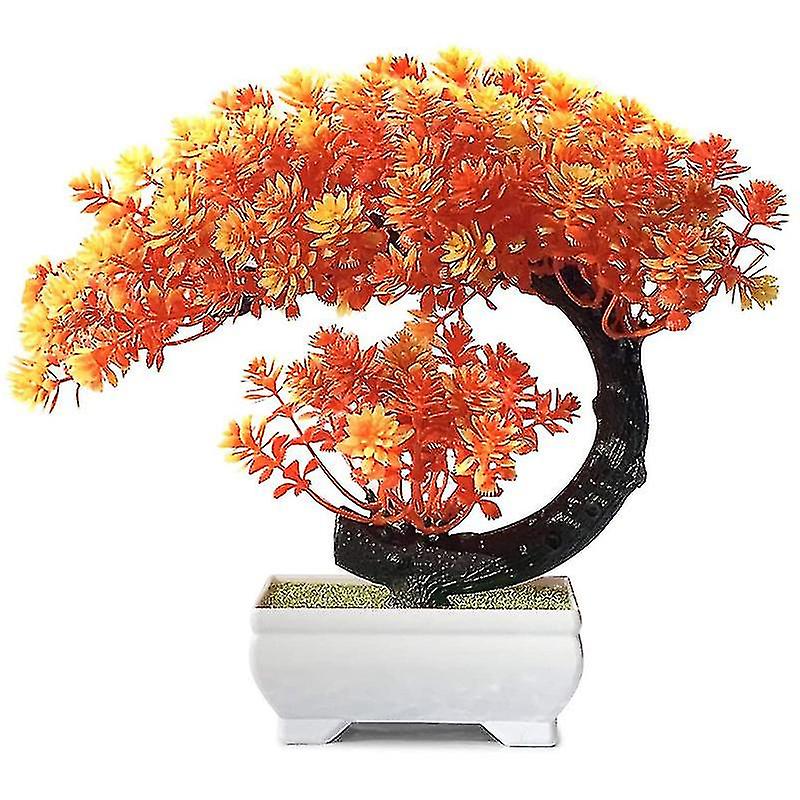 Small Artificial Plants Fake Bonsai Tree, Indoor Plant For Home Office Decor, 9.5 X 8.5 Inch(orange