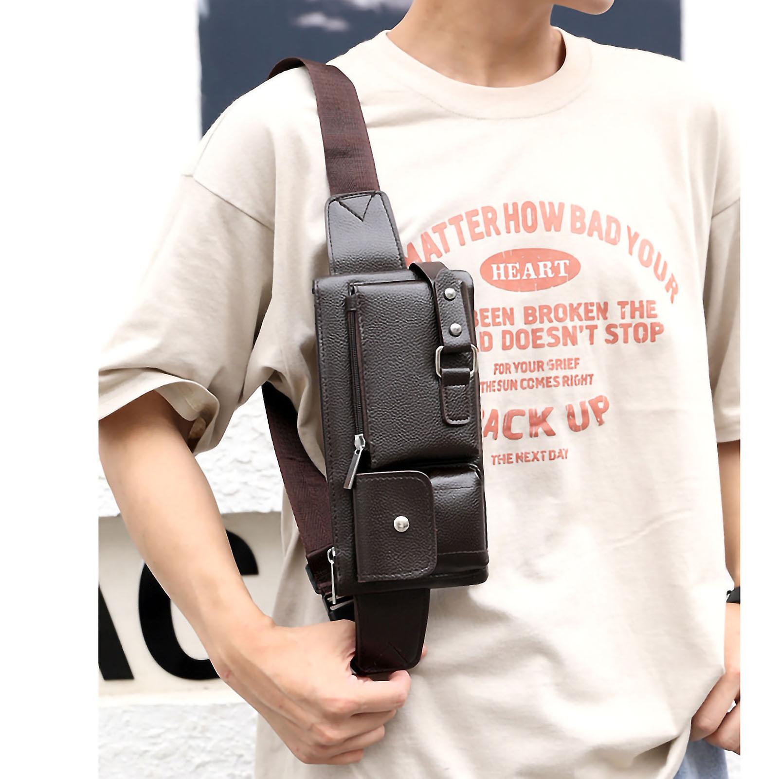 Small Chest Bag Multipurpose Large Capacity Mobile Phone Bag Casual Shoulder Sport Bag for Men Dark Brown Small