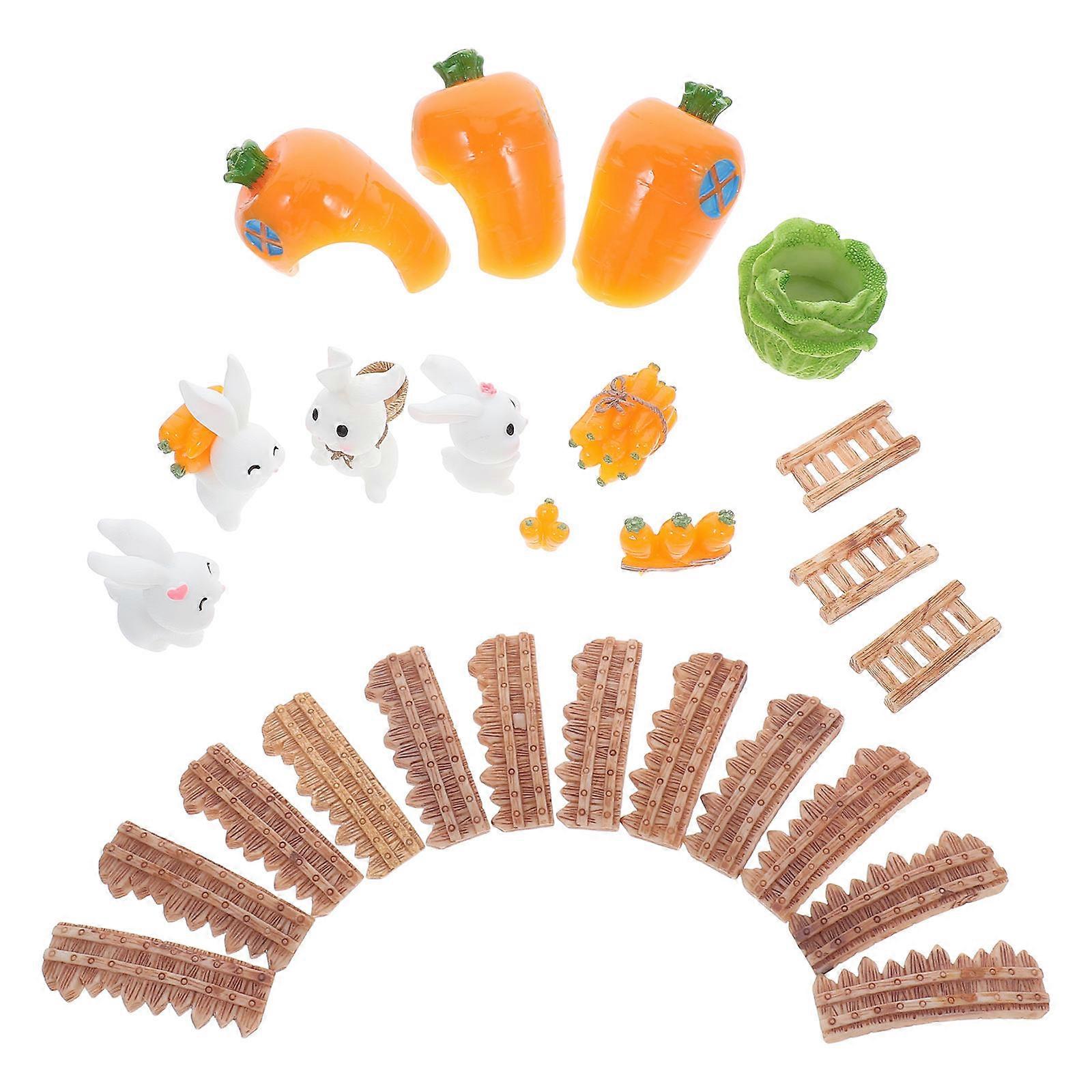 Bunny Miniature Figurines Miniature Rabbit Theme Figurines For Office Display House Shape Wood 26Pcs
