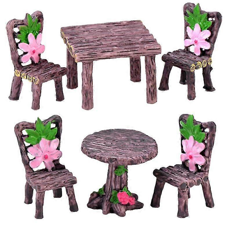 Miniature Tables Small House Microlandscape Resin Furniture Accessories(6pcs, coffee color)