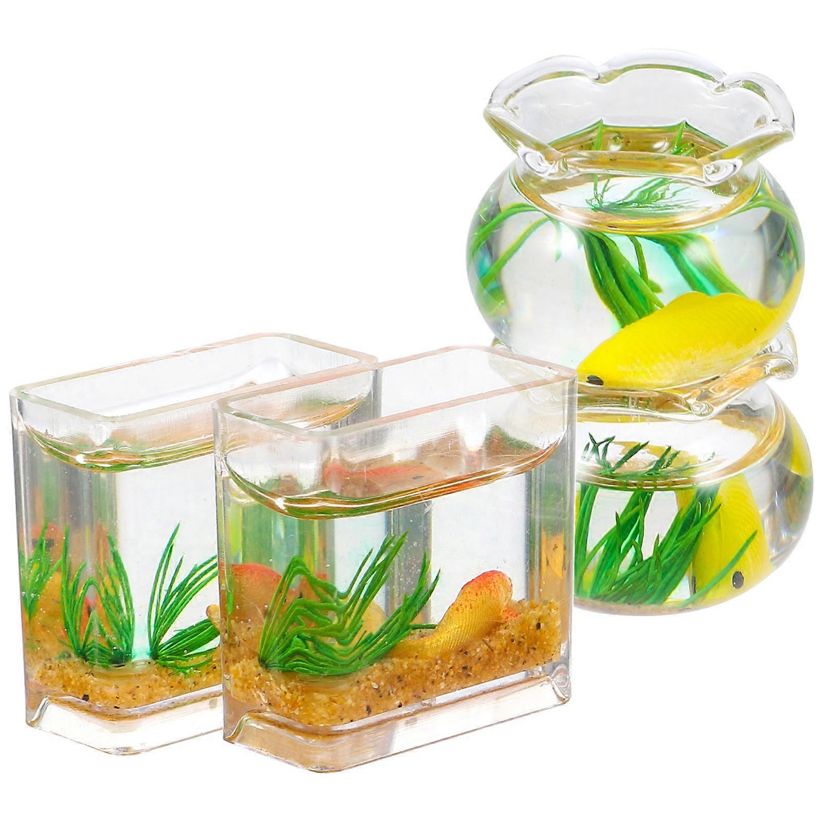 Miniature Landscape Dollhouse Aquarium Realistic Design for Indoor Decoration Glass 2.3x2.3x2.1cm 4Pcs