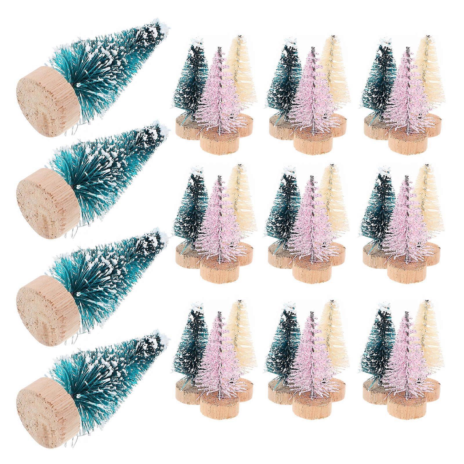 Small Tabletop Tree Mini Christmas Tree Home Decoration Blue-Green Sisal Silk 36Pcs