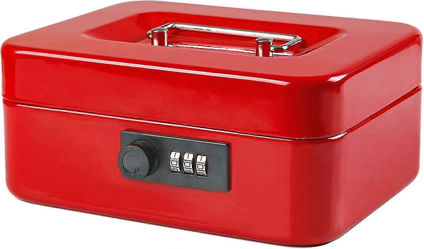 Small Cash Box With Combination Lock Durable Metal Cash Box With Money Tray Black,7.87 X 6.3 X 3.35 Inches