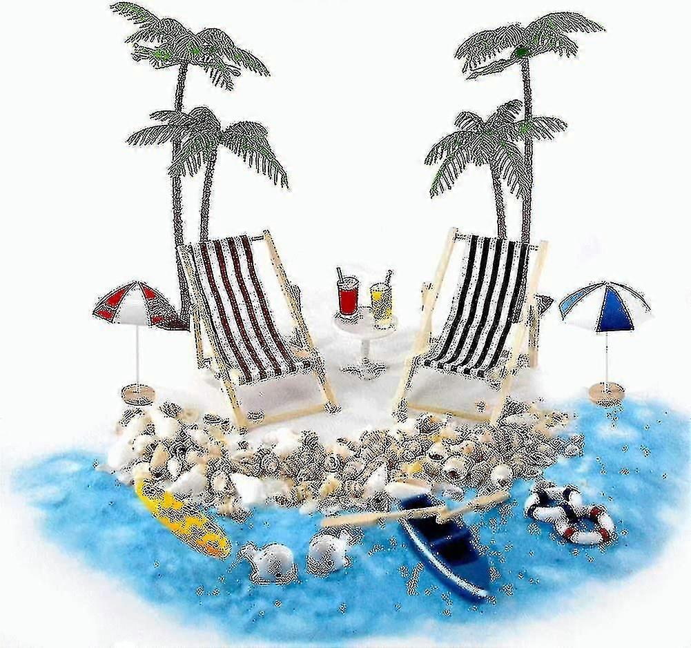 Micro-landscape Mini Deck Chair Beach Chair Parasol Small Palm Tree Decoration Accessories, 13 Pieces Miniature Ornament Set For Diy Fairy