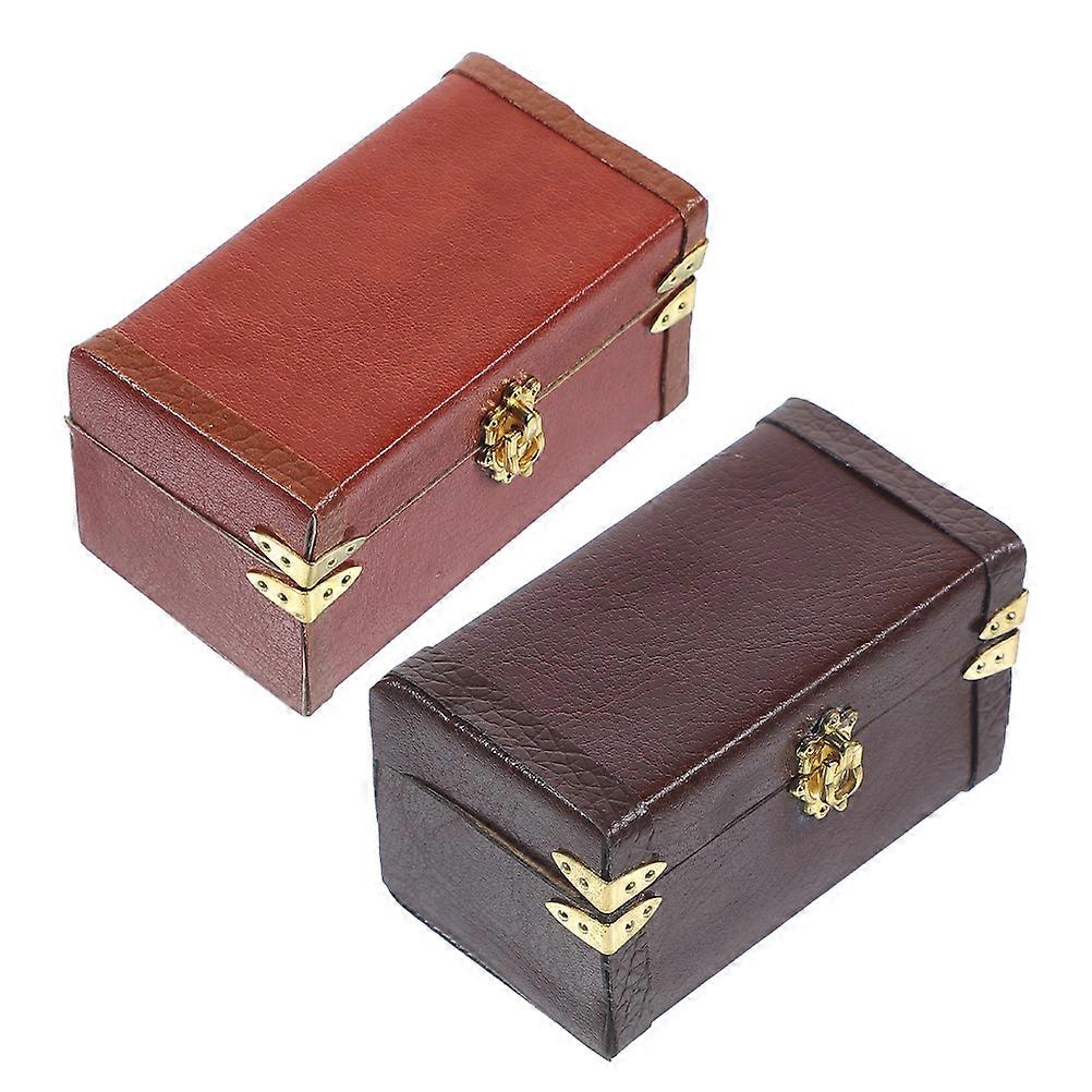 Miniature Suitcase Decorative Accessory for Doll House Vintage Style Wood and PU 2 Pieces