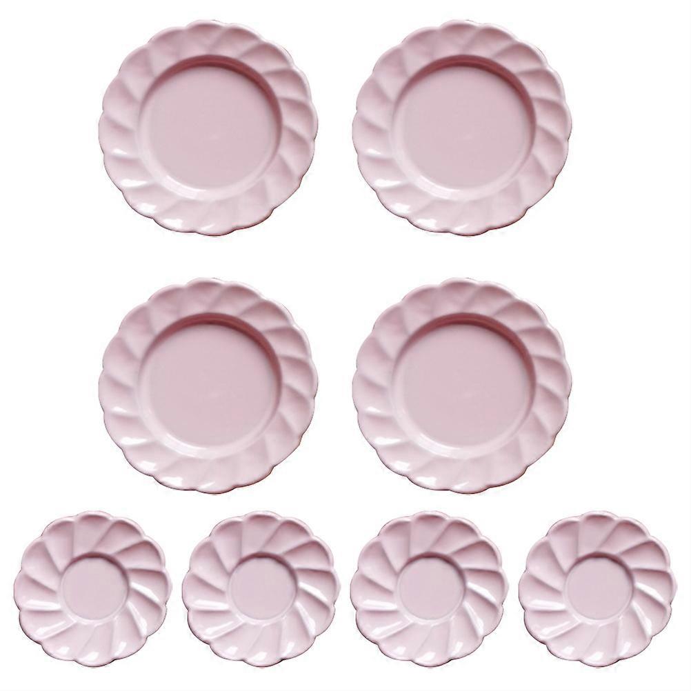 Miniature Dollhouse Accessories Mini Round Dish For Home Decor Kitchen Scene Decoration 2.3X2.3X0.38CM Pink 8Pcs