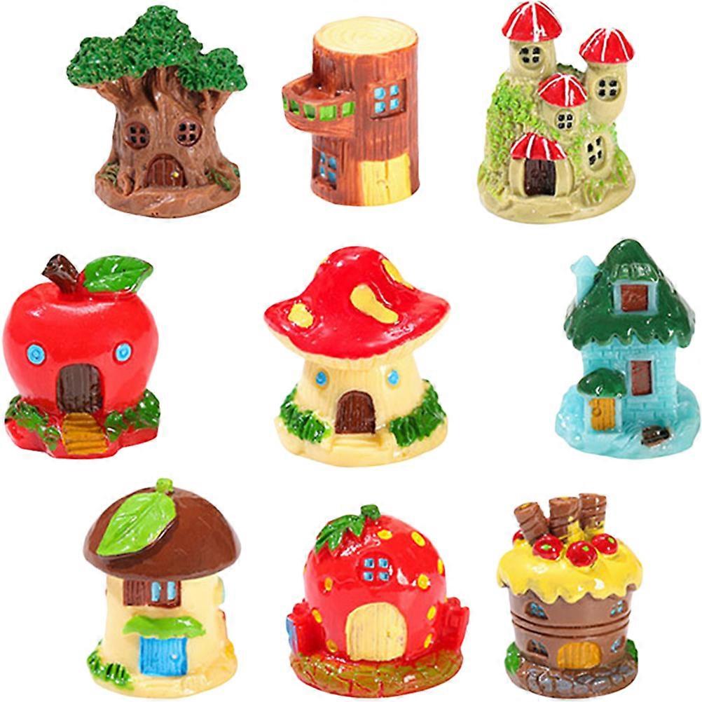 Miniature Resin Tiny House Ornaments – Lightweight Decorative Mini Landscape Figurines for Garden, Desktop, Balcony & DIY Craft Accessories (9pcs Set)