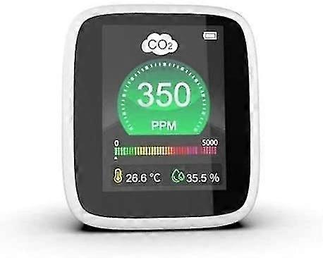 Mini Carbon Dioxide Detector LCD display Infrared carbon dioxide sensor Temperature display: Celsius, Fahrenheit switchable Carbon dioxide detection range: 400-5000 ppm Carbon dioxide exceeding alarm value: 1000ppm. The alarm function can be deactivated and activated by double clicking on the power supply. Power mode: built-in 1600mAh battery Standard: host, charging cable, English manual