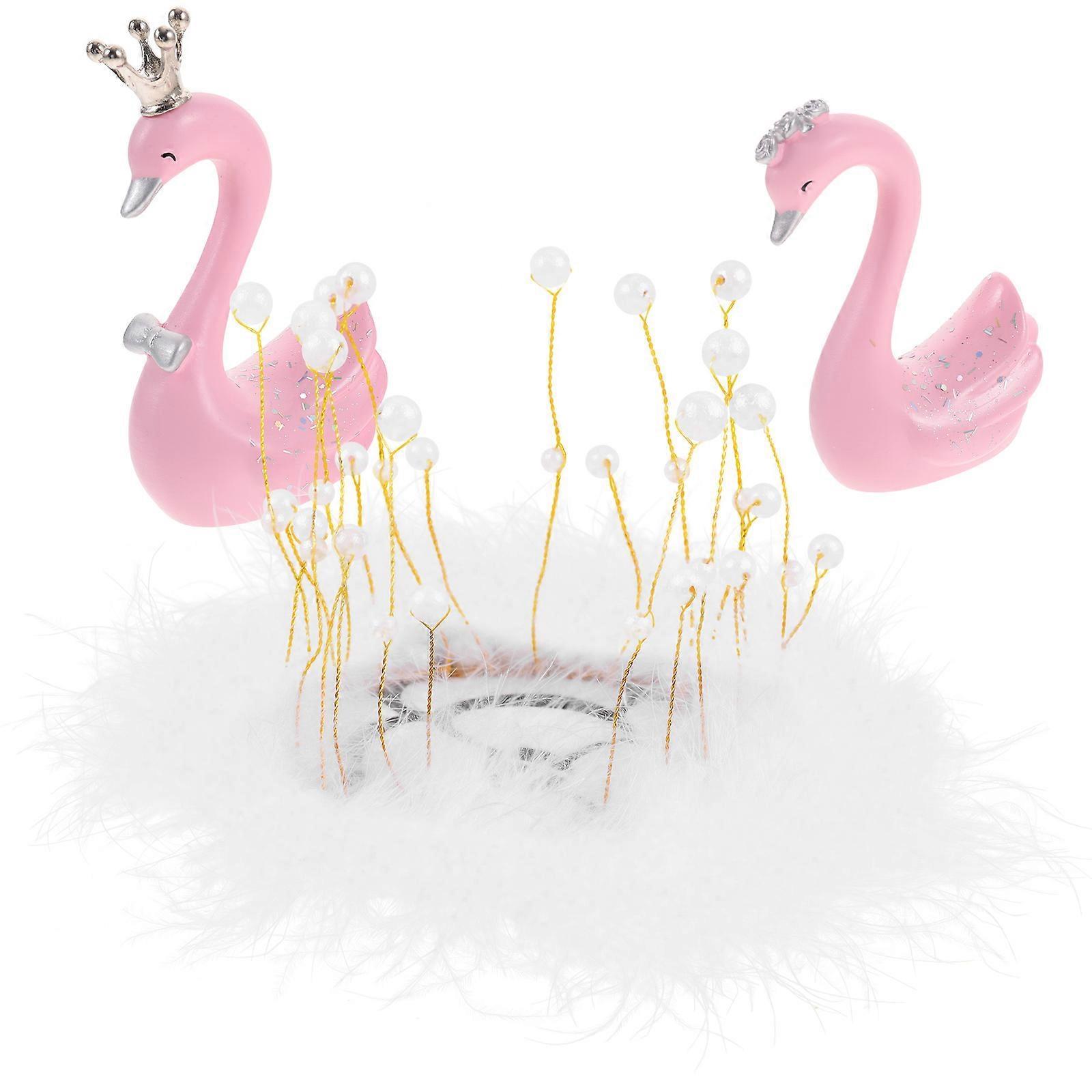 Mini Resin Figurines Swan Figurine Decor Cartoon Appearance For Home Decor Pearl White 8X8X6cm DIY Miniature 1Set