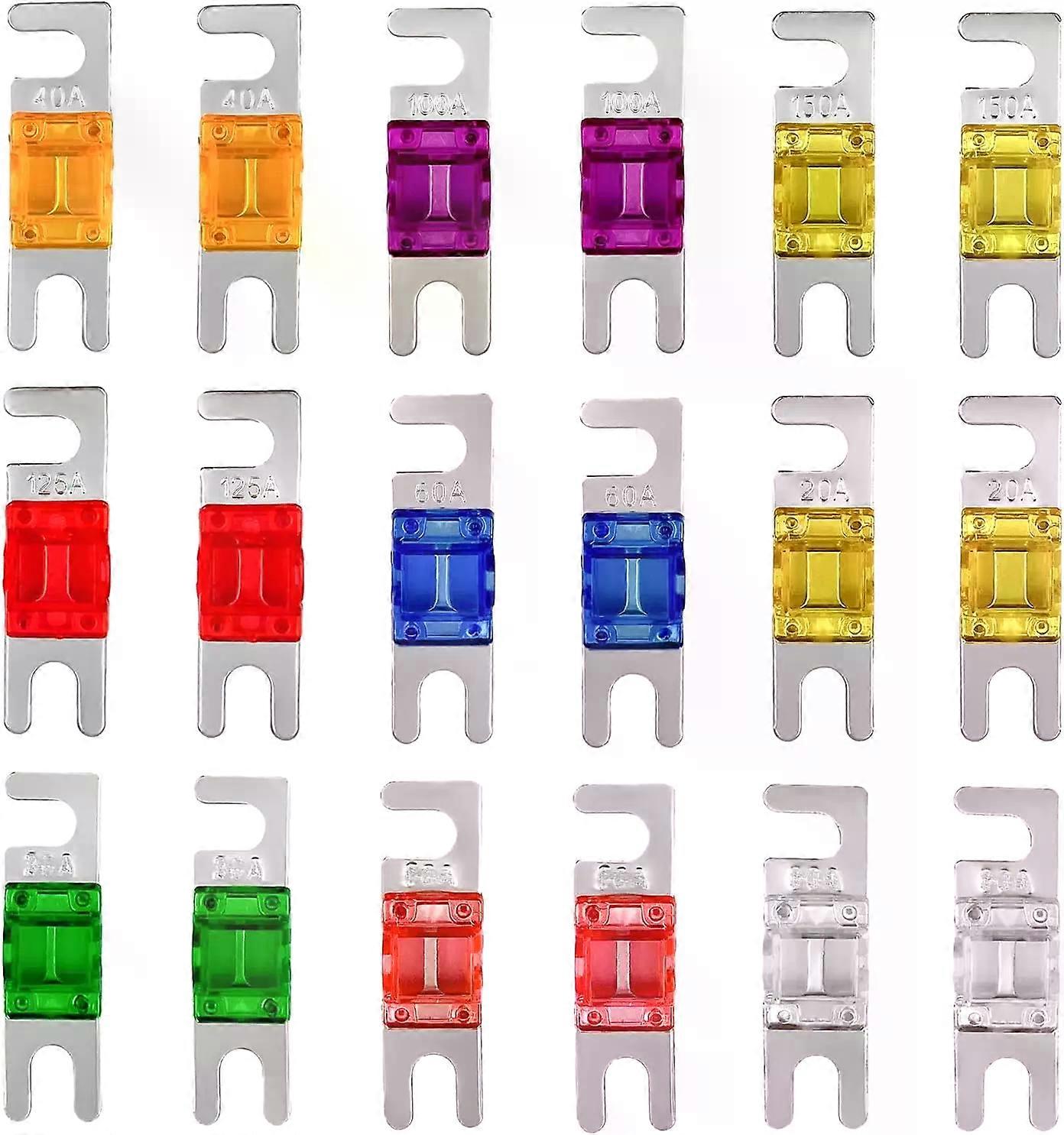 Mini ANL Fuse, 18 PCS Multipack Plated Blade Fuse Set for Car - 20A 30A 40A 50A 60A 80A 100A 125A 150A
