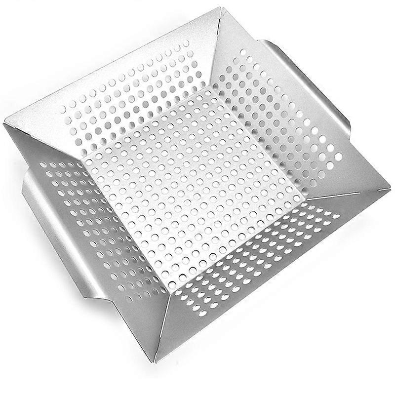 Mini Grilling Basket , Stainless Steel Perforated Grill Baskets for Grilling Veggies, Seafood, and Meats, Durable Design The grill basket is made of durable stainless steel. Small holes allow heat and smoke to pass through for optimal and even grilling of meat, fish, vegetables and more. PERFECT SIZE Small and convenient size for crowded grills or when you don't want to clean the entire grill for a small meal. Size: 34.8*30.7*5.2cm, can hold food for 2-3 people. Convenient Design Easy to clean with soap and water or dishwasher. Lightweight and easy to carry, this grill basket is ideal for use with most grill types i.e. charcoal, gas, propane, infrared and portable electric (great for camping). PERFECT GIFT The BBQ Basket Set is a great gift for your BBQ lover, cooking lover friends and family.