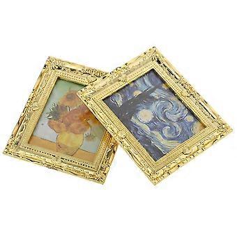 Mini Dollhouse Painting Gold Wall Picture Office Decoration Smooth Surface Micro Landscape 2Pcs