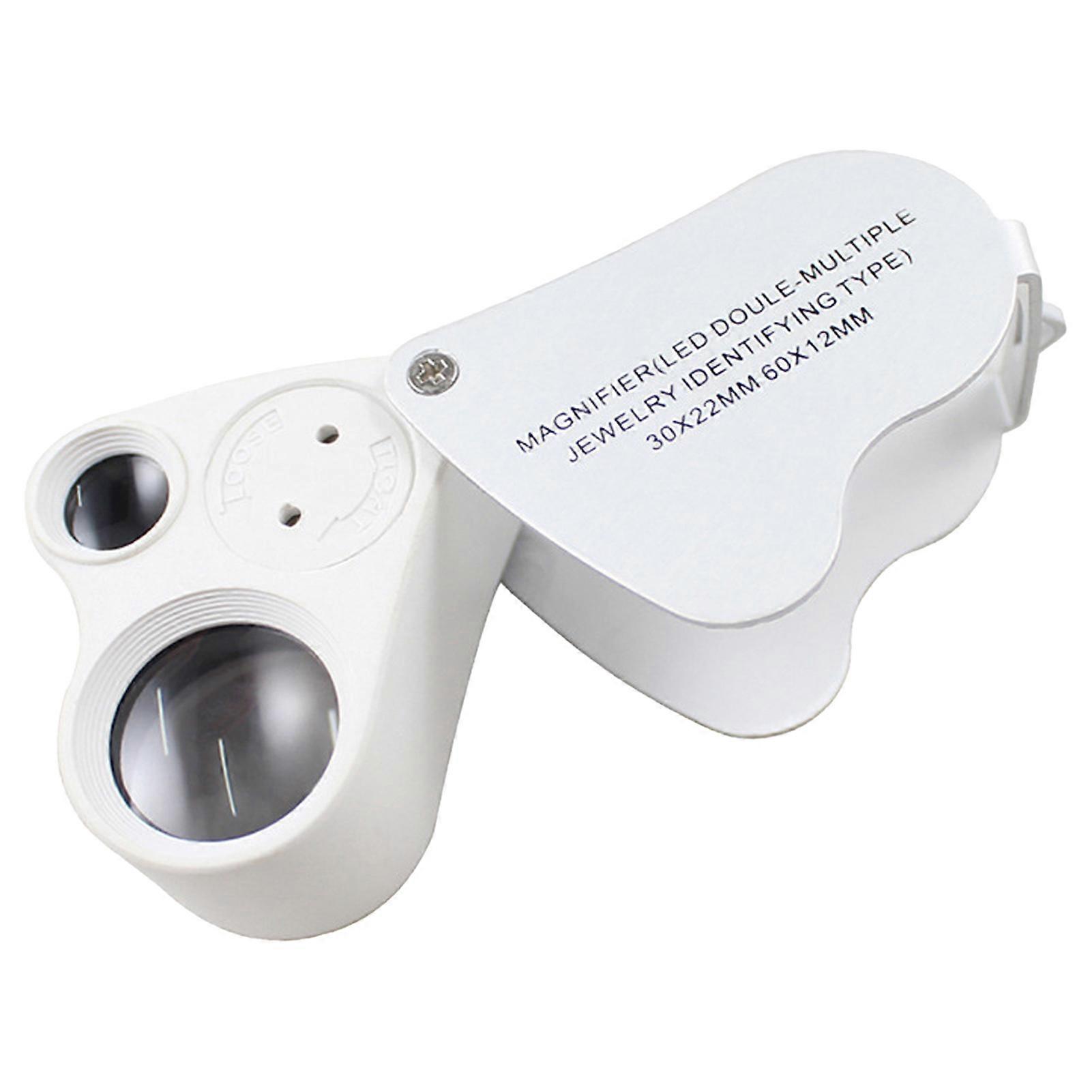 Mini Magnifier Dual Lens 30X 60X Jewelry Lens Loupe Magnifying Glass with LED Light Crafts Identification QinHai