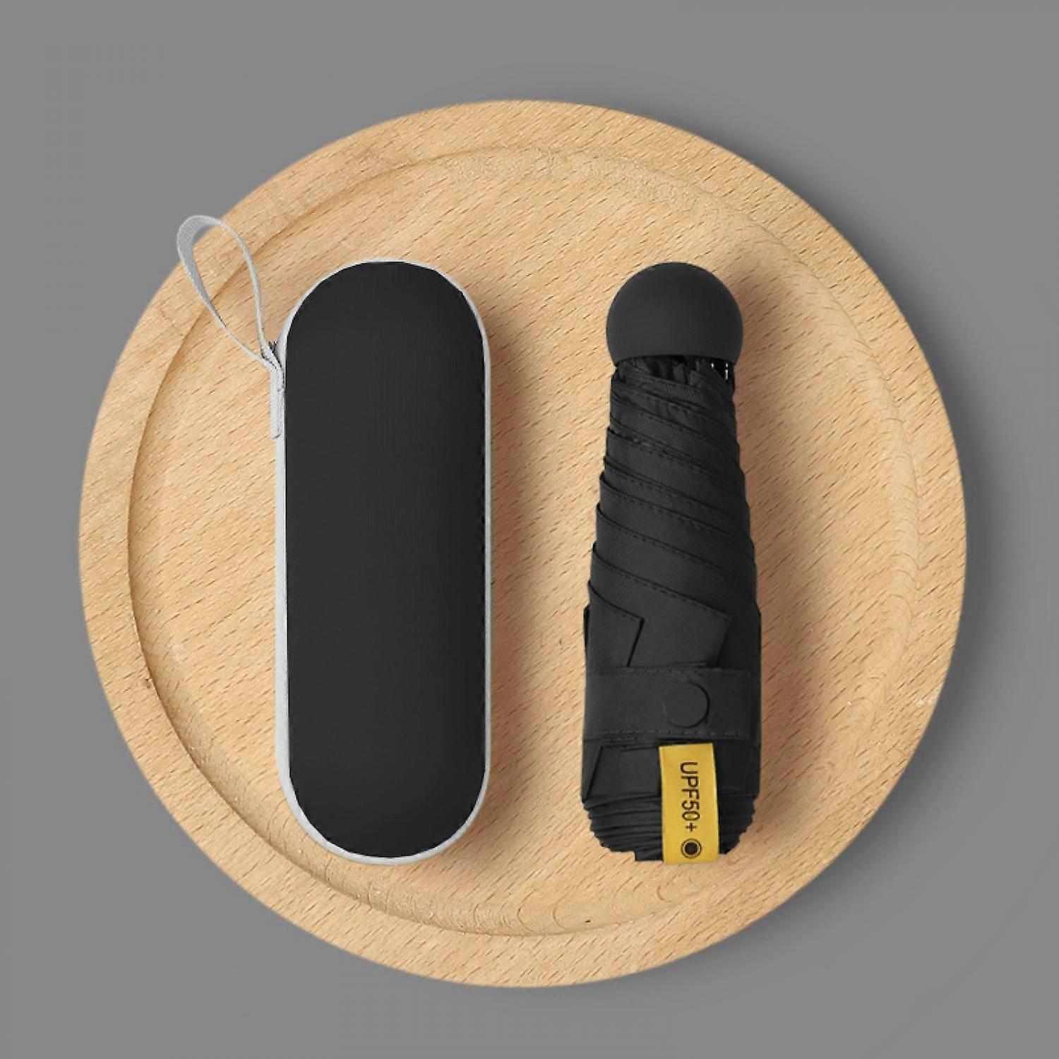 Mini Umbrella for Purse With Case-Small Compact UV Umbrella Protection Sun-Pocket Lightweight Umbrella---Black
