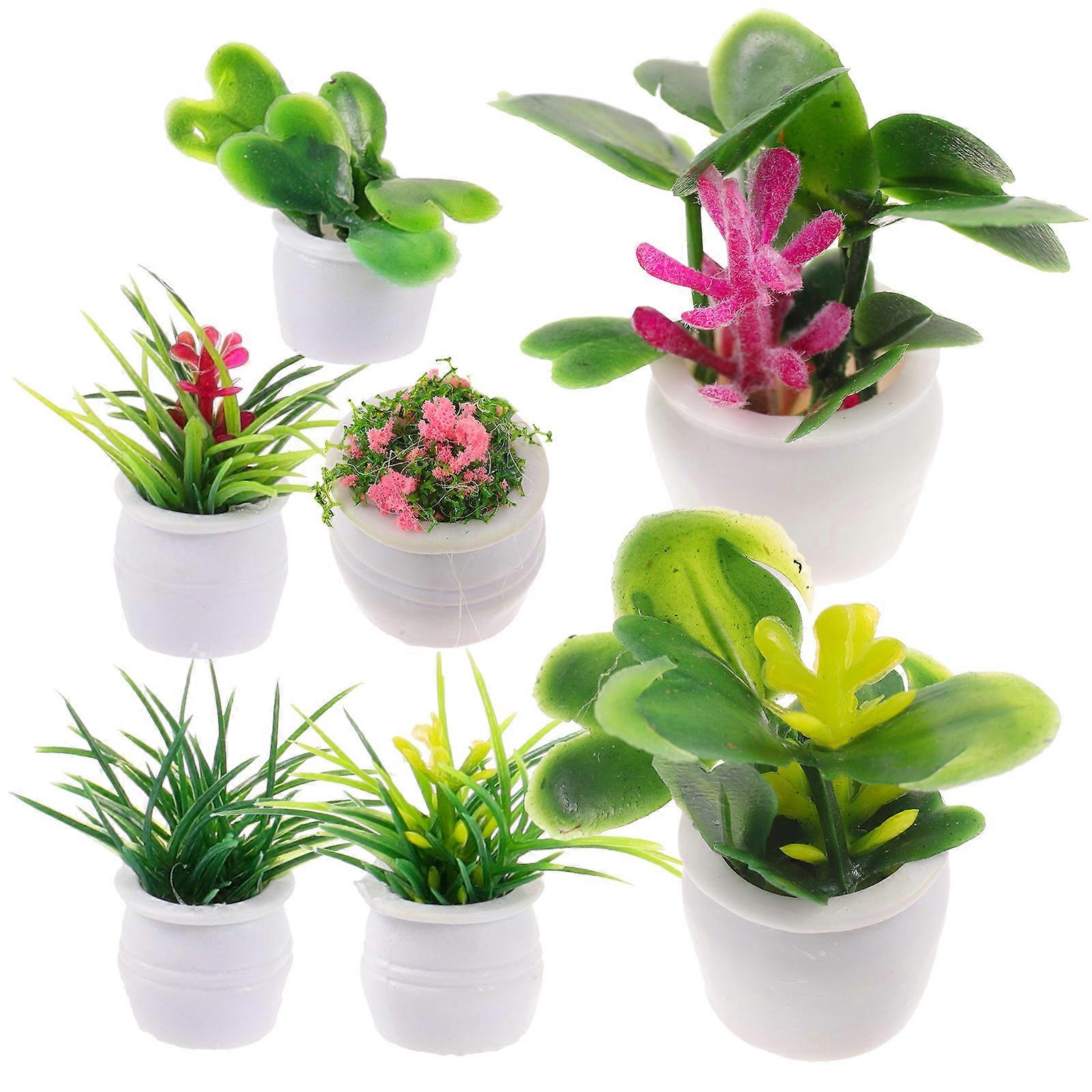 Mini Flower Plant Table Model Diy Miniature Artificial Flower Assorted .8X3.5CM Round Edge Planter Small Gardens 7Pcs