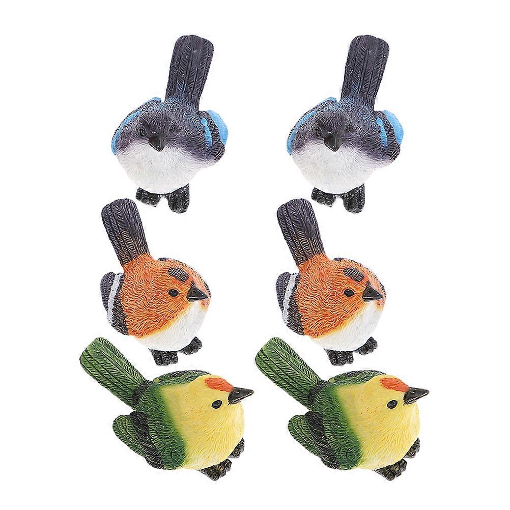Mini Resin Birds Garden Decor Small Bird Figurines Assorted Color For Miniature Garden Decoration 6Pcs