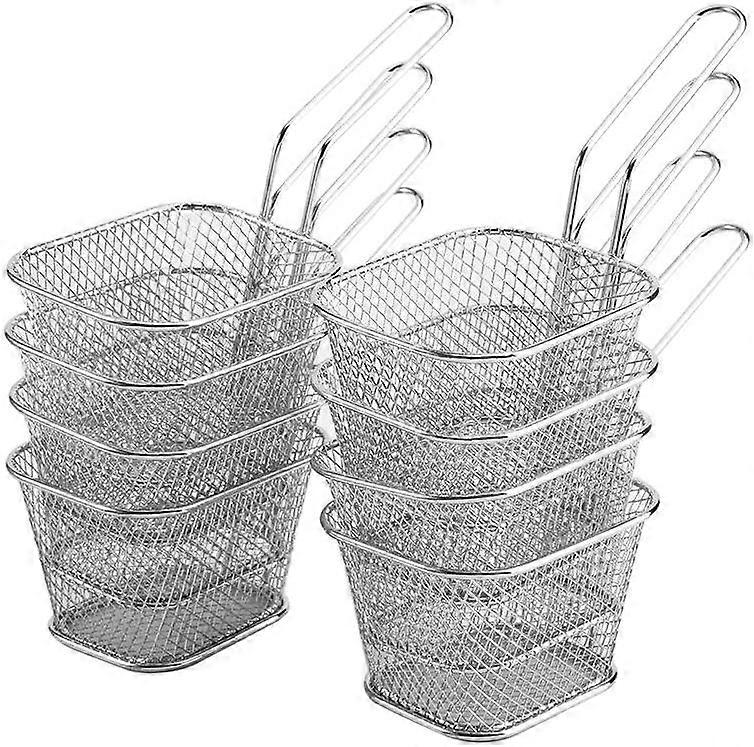Mini Round Fry Basket Stainless Steel Individual Fry Serving Plates Ideal for Kitchen (8Pcs)
