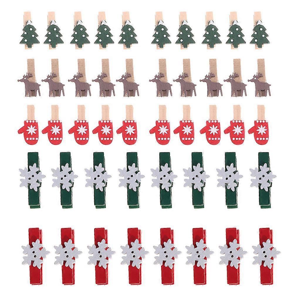 Mini Photo Clip 100 Pcs Assorted Color Christmas Tree Deer Glove Pattern Wooden Photo Clip Material For Households