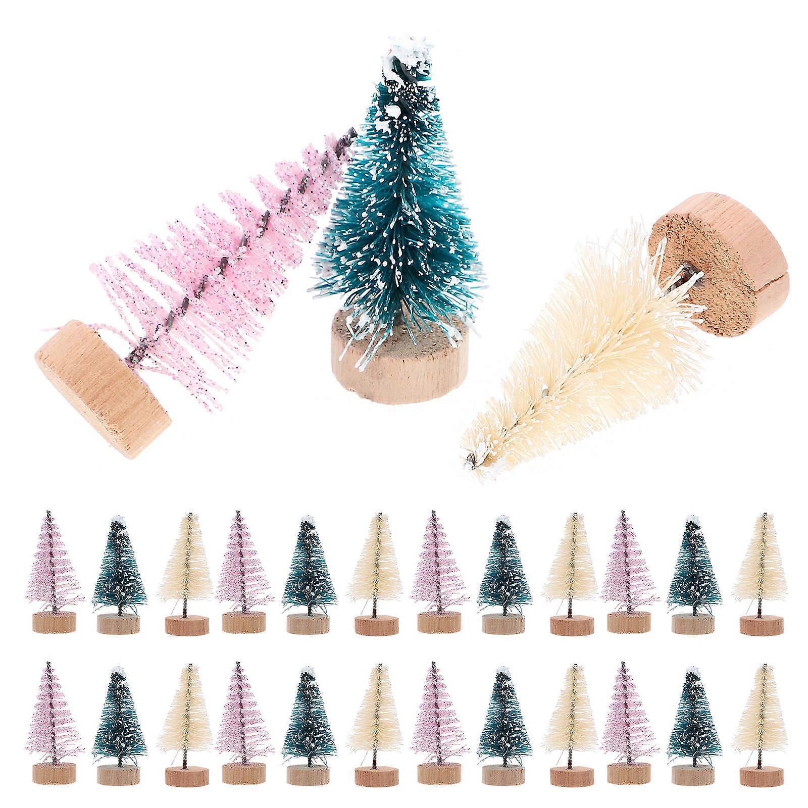 Mini Christmas Tree Wooden Base for Decoration 144Pcs Miniature Xmas Trees