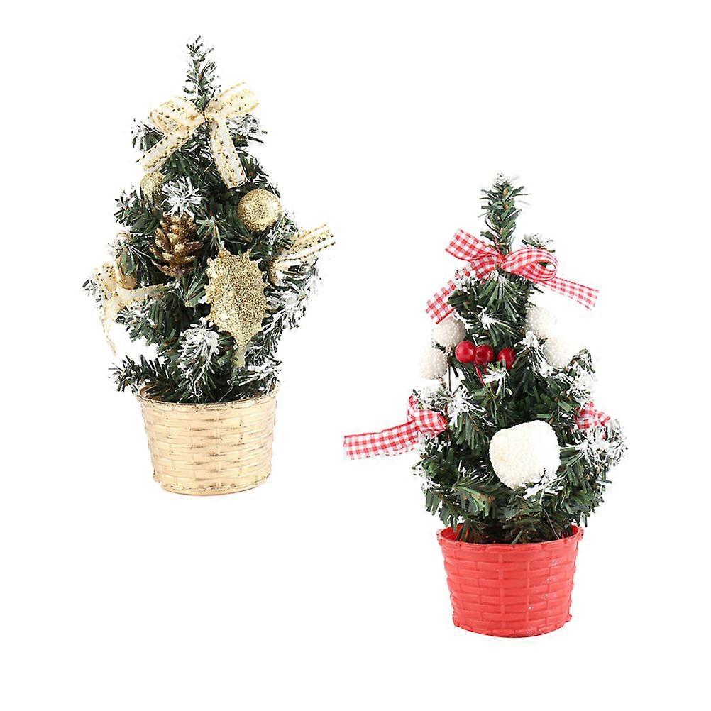 Desktop Tree Mini Christmas Tree Ornament For Home Office Store Plastic 2Pcs