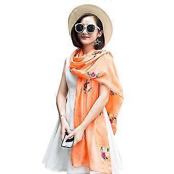 Fashion Long Gauze Scarf Women Chiffon Floral Embroidery Soft Summer Shawl (orange)