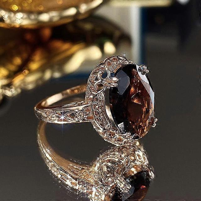Fashion Luxury Dark Red Crystal Ring Geometric Oval Zircon Rings for Women Trendy Party Prom Jewelry Gift Women Ring
